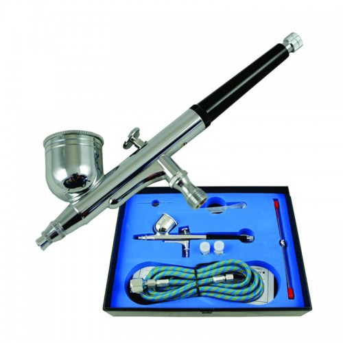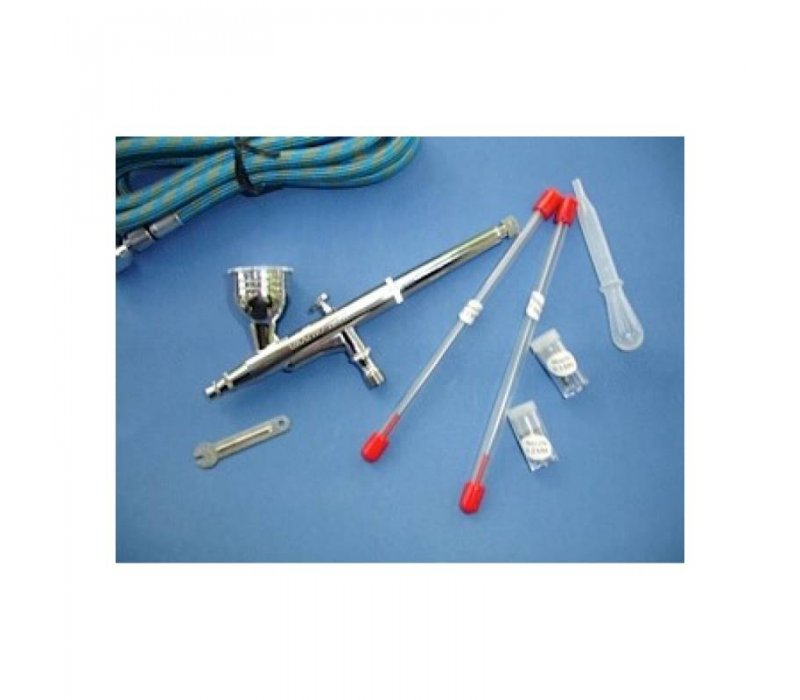 Διπλής λειτουργίας, σωλήνας παροχής αέρα, δοσομετρητής, βελόνες και κεφαλές 0,2/0,5mm. Κλειδί αποσυναρμολόγησης και εσωτερικής ανάμειξης