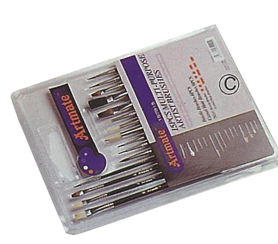 Artmate σετ πινέλα ζωγραφικής 15τεμ. Διάφορα μεγέθη, στρόγγυλα και πλακέ.