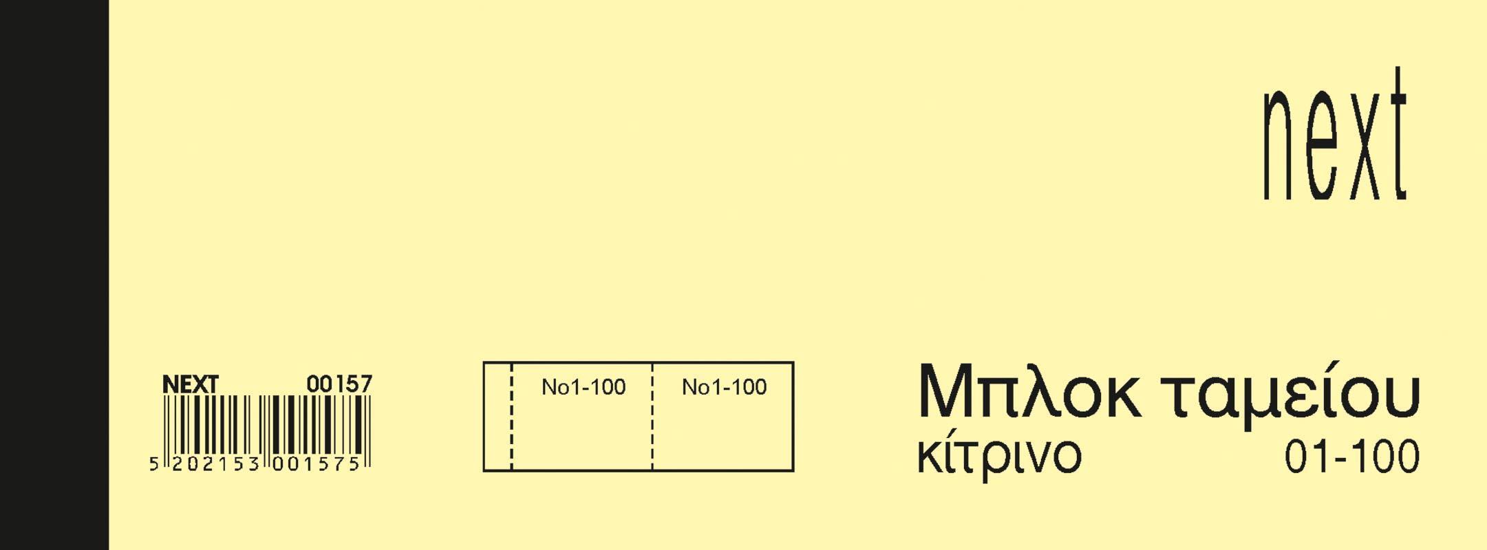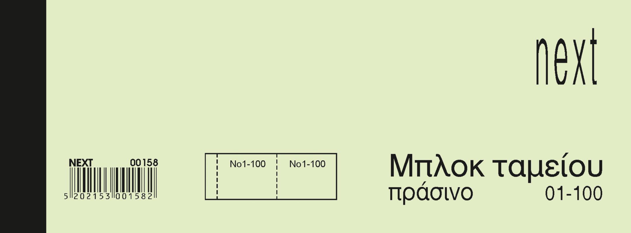 Μπλοκ ταμείου (λαχνοί) με αρίθμηση 01-100 και περφορέ στη μέση. Διάσταση: 6x16εκ.