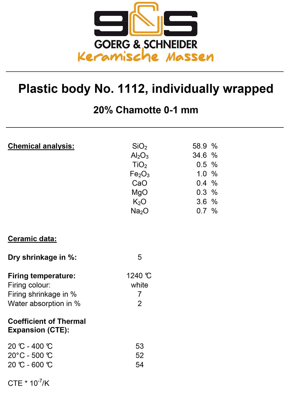 Goerg & Schneider stoneware λευκός πηλός 10kg