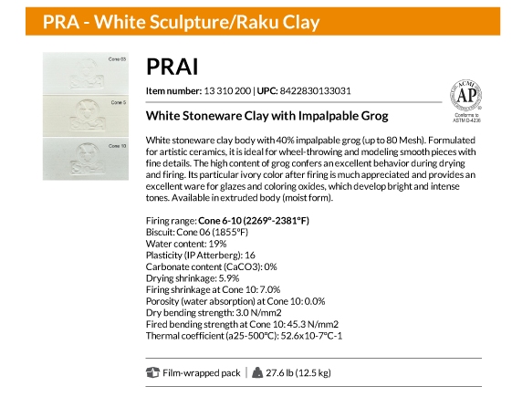Prai Stoneware Λευκός Πηλός 12,5kg