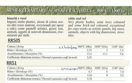 Λευκός πηλός με χονδρό σαμότ 0-1mm, κατάλληλος για ρακού, γλυπτική και επίπεδες επιφάνειες. Το μπισκότο ψήνεται 980-1000°C και γυαλί από 1050-1260°C. Συσκευασία 20kg