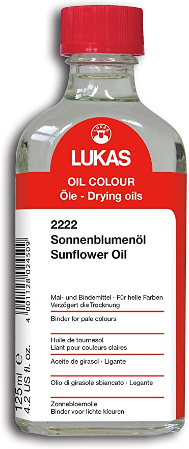 Sun Flower Oil 125 ml bottle Colouring and bonding agent in of oil painting 'Sunflower Oil gentle derived, bleached Entschleimt ("Pharma Quality). Trocknet slower than 'linseed oil "# 2212, due to its small Eigen colour perfect for use" White Shade. Artists 'quality of Lukas.