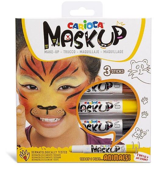 Carioca χρώματα προσώπου σε μορφή στικ. Κατάλληλα για μεταμφιέσεις για παιδιά και ενήλικες. Λαμπερά χρώματα, με μεγάλη καλυπτικότητα που μπορούν να αναμειχθούν μεταξύ τους. Ξεπλένονται εύκολα μόνο με νερό.