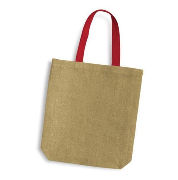 Τσάντα tote, πολλαπλών χρήσεων από φυσική γιούτα. Διαθέτει ανθεκτικές λαβές κόκκινου χρώματος και ύψους 24εκ. Διαστάσεις: 38x8xY38εκ.